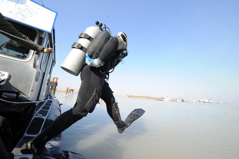 | Keywords: US Navy 110124-N-6705S-185 Chief Navy Diver Josh Ploman, assigned to Mobile Diving and Salvage Unit (MDSU) 2, enters the water during a training di.jpg en UMM QASR Iraq Jan 24 2011 Chief Navy Diver Josh Ploman assigned to Mobile Diving and Salvage Unit MDSU 2 enters the water during a training dive with Iraqi divers at the Pier of Umm Qsar MDSU-2 is deployed with Commander Task Group 56 1 supporting maritime security operations and theater security cooperation efforts in the U S 5th Fleet area of responsibility U S Navy photo by Mass Communication Specialist 2nd Class Justin Stumberg/Released 2011-01-24 110124-N-6705S-185 Navy http //www navy mil/view_image asp id 97533 U S Navy photo by Mass Communication Specialist 2nd Class Justin Stumberg PD-USGov-Military-Navy Images from US Navy location Umm Qasr Iraq Giant stride water entries |