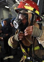 | Keywords: US Navy 110306-N-MW330-085 Damage Controlman Fireman Talique Whitfield, from Long Island, N.Y., dons firefighting equipment during a timed event as.jpg en PACIFIC OCEAN March 6 2011 Damage Controlman Fireman Talique Whitfield from Long Island N Y dons firefighting equipment during a timed event as part of a damage control Olympics aboard the aircraft carrier USS Abraham Lincoln CVN 72 The competition between teams of Sailors is designed to test their ability to respond to various at-sea mishaps and emergency scenarios The Abraham Lincoln Carrier Strike Group is underway on a scheduled deployment to the U S 5th and 7th Fleet areas of responsibility U S Navy photo by Mass Communication Specialist 3rd Class Spencer Mickler/Released 2011-03-06 110306-N-MW330-085 Navy http //www navy mil/view_image asp id 98206 U S Navy photo by Mass Communication Specialist 3rd Class Spencer Mickler PD-USGov-Military-Navy Aboard USS Abraham Lincoln CVN-72 |