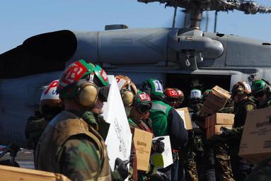 | Keywords: US Navy 110318-N-GL340-053 Sailors load food and humanitarian supplies aboard an HH-60H Sea Hawk helicopter assigned to the Black Knights of Helico.jpg en PACIFIC OCEAN March 18 2011 Sailors load food and humanitarian supplies aboard an HH-60H Sea Hawk helicopter assigned to the Black Knights of Helicopter Anti-Submarine Squadron HS 4 aboard the aircraft carrier USS Ronald Reagan CVN 76 Ronald Reagan is off the coast of Japan providing humanitarian assistance to Japan as directed in support of Operation Tomodachi U S Navy photo by Mass Communication Specialist Seaman Apprentice Michael Feddersen/Released 2011-03-18 110318-N-GL340-053 Navy http //www navy mil/view_image asp id 98592 U S Navy photo by Mass Communication Specialist Seaman Apprentice Michael Feddersen PD-USGov-Military-Navy USS Ronald Reagan CVN-76 humanitarian aid Operation Tomodachi in March 2011 Helicopter Anti-Submarine Squadron 4 United States Navy Helicopters at USS Ronald Reagan CVN-76 HH-60H Rescue Hawk |