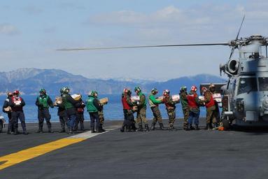 Keywords: US Navy 110318-N-GL340-013 Sailors load food and humanitarian supplies aboard an HH-60H Sea Hawk helicopter assigned to the Black Knights of Helico.jpg en PACIFIC OCEAN March 18 2011 Sailors load food and humanitarian supplies aboard an HH-60H Sea Hawk helicopter assigned to the Black Knights of Helicopter Anti-Submarine Squadron HS 4 aboard the aircraft carrier USS Ronald Reagan CVN 76 Ronald Reagan is off the coast of Japan providing humanitarian assistance to Japan as directed in support of Operation Tomodachi U S Navy photo by Mass Communication Specialist Seaman Apprentice Michael Feddersen/Released 2011-03-18 110318-N-GL340-013 Navy http //www navy mil/view_image asp id 98582 U S Navy photo by Mass Communication Specialist Seaman Apprentice Michael Feddersen PD-USGov-Military-Navy USS Ronald Reagan CVN-76 humanitarian aid Operation Tomodachi in March 2011 Taken with Nikon D200 Helicopters at USS Ronald Reagan CVN-76 Helicopter Anti-Submarine Squadron 4 United States Navy HH-60H Rescue Hawk