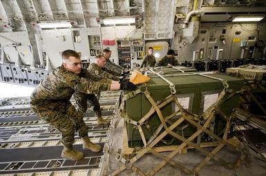 | Keywords: US Navy 110325-F-UI176-727 Marines and Airmen push a pallet of supplies aboard a C-17 Globemaster III aircraft.jpg en YOKOTA Japan March 25 2011 Marines and Airmen push a pallet of supplies aboard a C-17 Globemaster III aircraft after a flight to Marines Corps Air Station Iwakuni to pick up Marines assigned to Marine Wing Support Squadron MWSS 171 MWSS-171 is heading to Sendai Airport to set up portable showers for humanitarian assistance to Japan as part of Operation Tomodachi U S Air Force photo by Staff Sgt Jonathan Steffen/Released 2011-03-25 110325-F-UI176-727 Navy http //www navy mil/view_image asp id 99168 U S Air Force photo by Staff Sgt Jonathan Steffen PD-USGov-Military-Navy Yokota Air Base Operation Tomodachi in March 2011 Loading and unloading C-17 Globemaster III |
