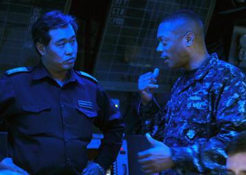 | Keywords: US Navy 110327-N-5538K-054 Capt. Bradley Lee, commander of Amphibious Squadron (PHIBRON) 11, discusses operational capabilities with Japan Maritime.jpg en PACIFIC OCEAN March 27 2011 Capt Bradley Lee commander of Amphibious Squadron PHIBRON 11 discusses operational capabilities with Japan Maritime Self-Defense Force Rear Adm Hiroyuki Kasui commander of Escort Flotilla 1 aboard the forward-deployed amphibious assault ship USS Essex LHD 2 Essex and embarked elements of the 31st Marine Expeditionary Unit 31st MEU are operating off the coast of Kesennuma in northeastern Japan supporting Operation Tomodachi U S Navy photo by Mass Communication Specialist 2nd Class Casey H Kyhl/Released 2011-03-27 110327-N-5538K-054 Navy http //www navy mil/view_image asp id 99087 U S Navy photo by Mass Communication Specialist 2nd Class Casey H Kyhl PD-USGov-Military-Navy Aboard USS Essex LHD-2 Operation Tomodachi in March 2011 Hiroyuki Kasui |