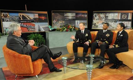 | Keywords: US Navy 110330-N-00332-112 Bob Batcher interviews Capt. William Hart and other senior leadership at WHRO Public Media about community involvement.jpg en NORFOLK March 30 2011 Bob Batcher host of Norfolk Perspectives interviews Capt William Hart left commanding officer of the aircraft carrier USS Theodore Roosevelt CVN 71 Cmdr Richard Jones mini boss and Lt Cmdr Karen Eifert the ship's public affairs officer at WHRO Public Media about the ship's recent involvement with children in the Norfolk community Theodore Roosevelt is undergoing refueling complex overhaul at Northrop Grumman Newport News Shipbuilding in Newport News Va U S Navy photo by Mass Communication Specialist Seaman Apprentice Cory Asato/Released 2011-03-30 110330-N-00332-112 Navy http //www navy mil/view_image asp id 99400 U S Navy photo by Mass Communication Specialist Seaman Apprentice Cory Asato PD-USGov-Military-Navy Aboard USS Theodore Roosevelt CVN-71 |