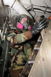 | Keywords: US Navy 110331-N-NB544-049 Damage Controlman Fireman Devon Ely feeds a filter into a steam cleaner in order to remove possible surface contaminates.jpg en PACIFIC OCEAN March 31 2011 Damage Controlman Fireman Devon Ely from Palmdale Calif feeds a filter into a steam cleaner in order to remove possible surface contaminates in the filter shop aboard the aircraft carrier USS Ronald Reagan CVN 76 Ronald Reagan is off the coast of Japan to provide disaster relief and humanitarian assistance to Japan as directed in support of Operation Tomodachi U S Navy photo by Mass Communication Specialist 3rd Class Kyle Carlstrom/Released 2011-03-31 110331-N-NB544-049 Navy http //www navy mil/view_image asp id 99325 U S Navy photo by Mass Communication Specialist 3rd Class Kyle Carlstrom PD-USGov-Military-Navy Radiation decontamination of the USS Ronald Reagan Radiation safety Mission Oriented Protective Posture Males wearing gas masks MCU-2/P Protective Mask 3M products 6000-series gas masks |