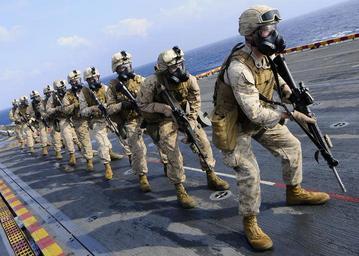 | Keywords: US Navy 110401-N-3154P-153 Marines with 1st Battalion, 2nd Marine Regiment, 26th Marine Expeditionary Unit (26th MEU), conduct a chemical, biologic.jpg en MEDITERRANEAN SEA April 1 2011 Marines with 1st Battalion 2nd Marine Regiment 26th Marine Expeditionary Unit 26th MEU conduct a chemical biological and radiological environment weapons training exercise aboard the amphibious assault ship USS Kearsarge LHD 3 Kearsarge is the command ship of the Kearsarge Amphibious Ready Group supporting maritime security operations and theater security cooperation efforts in the U S 6th Fleet area of responsibility U S Navy photo by Mass Communication Specialist 3rd Class Scott Pittman/Released 2011-04-01 110401-N-3154P-153 Navy http //www navy mil/view_image asp id 99445 U S Navy photo by Mass Communication Specialist 3rd Class Scott Pittman PD-USGov-Military-Navy Aboard USS Kearsarge LHD-3 Mission Oriented Protective Posture 26th Marine Expeditionary Unit M50 Joint Service General Purpose Mask Males wearing gas masks |