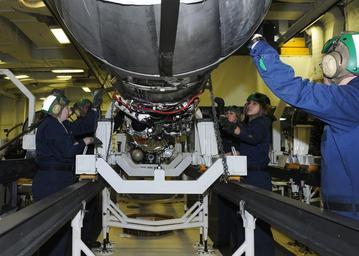 | Keywords: US Navy 110401-N-1004S-116 Sailors pull winching chains to lift an F404 jet engine out of its holding case aboard the aircraft carrier USS Ronald R.jpg en PACIFIC OCEAN APRIL 1 2011 Aviation Machinist's Mate 2nd Class Heather Fishel left from Fort Wayne Ind Aviation Machinist's Mate 2nd Class Carlos Edwards from Brooklyn N Y Boatswain's Mate Airman Seana Sprayberry from Atlanta Aviation Machinist's Mate 3rd Class Jesus Lopez from Tucson Ariz and Aviation Machinist's Mate 3rd Class Louis Perez from West Palm Beach Fla lower an F404 Jet Engine onto a testing mount aboard the aircraft carrier USS Ronald Reagan CVN 76 Ronald Reagan is off the coast of Japan providing humanitarian assistance to Japan as directed in support of Operation Tomodachi U S Navy photo by Mass Communication Specialist 3rd Class Shawn J Stewart/Released 2011-04-01 110401-N-1004S-116 Navy http //www navy mil/view_image asp id 99383 U S Navy photo by Mass Communication Specialist 3rd Class Shawn J Stewart PD-USGov-Military-Navy Maintenance of military aircraft on USS Ronald Reagan CVN-76 Aircraft engine testing Operation Tomodachi in April 2011 |