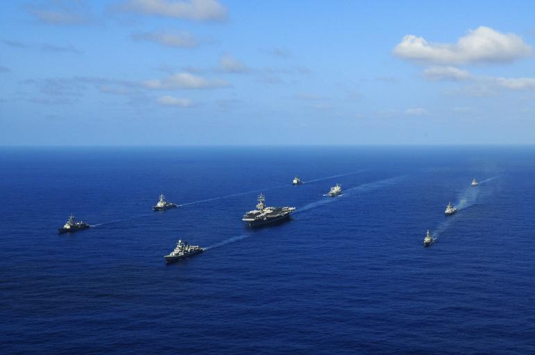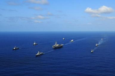 | Keywords: US Navy 110410-N-IC111-058 The aircraft carrier USS Ronald Reagan (CVN 76) and ships from the Ronald Reagan Carrier Strike Group and the Indian nav.jpg en PACIFIC OCEAN April 10 2011 The aircraft carrier USS Ronald Reagan CVN 76 and ships from the Ronald Reagan Carrier Strike Group and the Indian navy transit the Pacific Ocean during the conclusion of Exercise MALABAR a bilateral training operation with the Indian navy U S Navy photo by Mass Communication Specialist 3rd Class Kevin B Gray/Released 2011-04-10 110410-N-IC111-058 Navy http //www navy mil/view_image asp id 99707 U S Navy photo by Mass Communication Specialist 3rd Class Kevin B Gray PD-USGov-Military-Navy General views of USS Ronald Reagan CVN-76 045 |