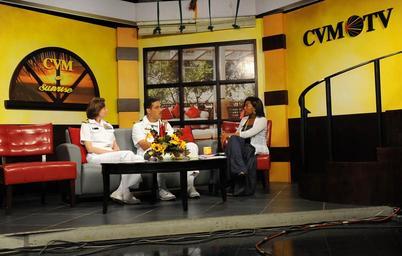 | Keywords: US Navy 110420-F-ET173-066 Capt. Brian Nickerson and Capt. Kathy Becker are interviewed during the.jpg en KINGSTON Jamaica April 20 2011 Capt Brian Nickerson mission commander of Continuing Promise 2011 and Capt Kathy Becker executive officer of the military treatment facility of the Military Sealift Command hospital ship USNS Comfort T-AH 20 are interviewed during the CVM at Sunrise morning news show at the CVM station in Kingston Jamaica Comfort is the primary platform for Continuing Promise a five-month humanitarian assistance mission to the Caribbean Central and South America U S Air Force photo by Staff Sgt Alesia D Goosic/Released 2011-04-20 110420-F-ET173-066 Navy http //www navy mil/view_image asp id 100124 U S Air Force photo by Staff Sgt Alesia D Goosic PD-USGov-Military-Navy Aboard USNS Comfort T-AH-20 |