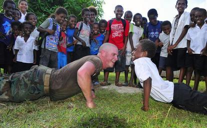 | Keywords: US Navy 110420-N-KB563-195 Builder Constructionman Gregory Kaminski, assigned to Naval Mobile Construction Battalion (NMCB) 133, competes in a push.jpg en ESPIRITU SANTO Vanuatu April 20 2011 Builder Constructionman Gregory Kaminski assigned to Naval Mobile Construction Battalion NMCB 133 competes in a push-up competition with a first grade student from Ban Ban primary school during a Pacific Partnership 2011 engineering project Seabees and Vanuatu engineers are building three schoolhouses on the island of Espiritu Santo Pacific Partnership is a five-month humanitarian assistance initiative that will make port visits to Tonga Vanuatu Papua New Guinea Timor-Leste and the Federated States of Micronesia U S Navy photo by Mass Communication Specialist 2nd Class Michael Russell/Released 2011-04-20 110420-N-KB563-195 Navy http //www navy mil/view_image asp id 100274 U S Navy photo by Mass Communication Specialist 2nd Class Michael Russell PD-USGov-Military-Navy Images from US Navy location Espiritu Santo Vanuatu |
