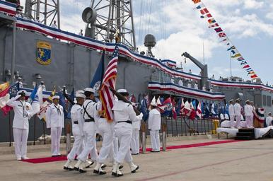| Keywords: US Navy 110421-N-BT887-058 A U.S. Navy color guard parades the colors during the decommissioning ceremony of the guided-missile frigate USS Jarret.jpg en SAN DIEGO April 21 2011 A U S Navy color guard parades the colors during the decommissioning ceremony of the guided-missile frigate USS Jarrett FFG 33 at Naval Station San Diego Jarrett completed numerous deployments conducting theater security cooperation escort duties and counter-illicit trafficking operations U S Navy photo by Mass Communication Specialist Seaman Benjamin Crossley/Released 2011-04-21 110421-N-BT887-058 Navy http //www navy mil/view_image asp id 100255 U S Navy photo by Mass Communication Specialist Seaman Benjamin Crossley PD-USGov-Military-Navy USS Jarrett FFG-33 Photographs of military flags of the United States Color guards of the United States Navy |