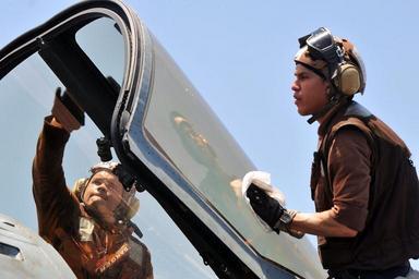| Keywords: US Navy 110520-N-1004S-479 Sailors clean the cockpit shield of an EA-6B Prowler aboard the aircraft carrier Ronald Reagan (CVN 76).jpg en ARABIAN GULF May 20 2011 Aviation Machinist Mate Airman Nathan Pena left from Dallas and Aviation Machinist Mate Airman Scott Hallock from Provo Utah assigned to the Cougars of Tactical Electronic Warfare Squadron VAQ 139 clean the cockpit shield of an EA-6B Prowler aboard the aircraft carrier Ronald Reagan CVN 76 Ronald Reagan and Carrier Air Wing CVW 14 are deployed to the U S 5th Fleet area of responsibility conducting close-air support missions as part of Operations Enduring Freedom and New Dawn U S Navy photo by Mass Communication Specialist 3rd Class Shawn J Stewart/Released 2011-05-20 110520-N-1004S-479 Navy http //www navy mil/view_image asp id 101389 U S Navy photo by Mass Communication Specialist 3rd Class Shawn J Stewart PD-USGov-Military-Navy United States Navy in the Persian Gulf Aircraft cleaning Electronic Attack Squadron 139 United States Navy |