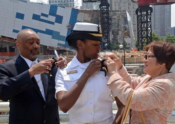 | Keywords: US Navy 110526-N-NN926-071 Lt. j.g. Naomi Reynolds, from New York, assigned to the multipurpose amphibious assault ship USS Iwo Jima (LHD 7), has h.jpg en NEW YORK May 25 2011 Lt j g Naomi Reynolds from New York assigned to the multipurpose amphibious assault ship USS Iwo Jima LHD 7 has her new shoulder boards put on her uniform by her parents during a promotion ceremony at Ground Zero in Manhattan during Fleet Week New York 2011 Approximately 3 000 Sailors Marines and Coast Guardsmen are participating in the 24th Fleet Week New York taking place May 25 through June 1 Fleet Week has been New York City's celebration of the sea services since 1984 It is an opportunity for citizens of New York and the surrounding tri-state area to meet Sailors Marines and Coast Guardsmen as well as see first-hand the capabilities of today's maritime services U S Navy photo by Mass Communication Specialist 2nd Class Zane Ecklund/Released 2011-05-25 110526-N-NN926-071 Navy http //www navy mil/view_image asp id 101695 U S Navy photo by Mass Communication Specialist 2nd Class Zane Ecklund PD-USGov-Military-Navy Fleet Week New York 2011 |