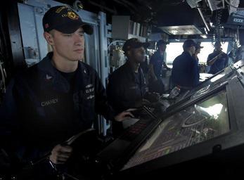 | Keywords: US Navy 110604-N-AQ172-209 eoman 2nd Class James Chaney stands watch aboard USS Monterey (CG 61).jpg en THE BOSPORUS June 4 2011 Yeoman 2nd Class James Chaney a master helmsman stands watch aboard the Ticonderoga-class guided-missile cruiser USS Monterey CG 61 as the ship transits through the Istanbu Strait Monterey is homeported out of Norfolk and is supporting maritime security operations and theater security cooperation effort in the U S 6th Fleet area of responsibility U S Navy photo by Mass Communication Specialist 2nd Class Daniel Viramontes/Released 2011-06-04 110604-N-AQ172-209 Navy http //www navy mil/view_image asp id 102182 U S Navy photo by Mass Communication Specialist 2nd Class Daniel Viramontes PD-USGov-Military-Navy Aboard USS Monterey CG-61 |