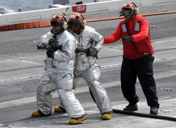 | Keywords: US Navy 110627-N-QL471-029 Sailors man a fire hose during a general quarters training exercise aboard the aircraft carrier USS George H.W. Bush (CV.jpg en ARABIAN GULF June 27 2011 Sailors man a fire hose during a general quarters training exercise aboard the aircraft carrier USS George H W Bush CVN 77 George H W Bush is deployed supporting maritime security operations and theater security cooperation efforts in the U S 5th Fleet area of responsibility on its first operational deployment U S Navy photo by Mass Communication Specialist 3rd Class Billy Ho/Released 2011-06-27 110627-N-QL471-029 Navy http //www navy mil/view_image asp id 103330 U S Navy photo by Mass Communication Specialist 3rd Class Billy Ho PD-USGov-Military-Navy Aboard USS George H W Bush CVN-77 |