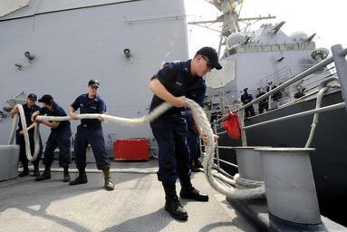 | Keywords: US Navy 110701-N-TY225-032 Sailors assigned to the guided-missile cruiser USS Anzio (CG 68) heave in the lines as the ship gets underway.jpg en PORT OF DJIBOUI Djibouti July 1 2011 Sailors assigned to the guided-missile cruiser USS Anzio CG 68 heave in the lines as the ship gets underway Anzio is assigned to Combined Task Force 151 a multi-national mission-based task force established by Combined Maritime Forces in January 2009 to conduct counter-piracy operations in the Red Sea Gulf of Aden Somali Basin and Arabian Sea U S Navy photo by Mass Communication Specialist 2nd Class Bryan Weyers/ 2011-07-01 110701-N-TY225-032 Navy http //www navy mil/view_image asp id 104389 U S Navy photo PD-USGov-Military-Navy USS Anzio CG-68 |