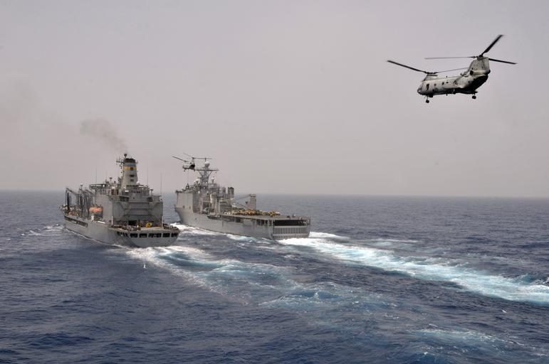| Keywords: US Navy 110709-N-GW695-104 CH-46 Sea Knight helicopters assigned to the Evil Eyes of Marine Medium Helicopter Squadron (HMM) 163 approach the Milit.jpg en GULF OF ADEN July 9 2011 CH-46 Sea Knight helicopters assigned to the Evil Eyes of Marine Medium Helicopter Squadron HMM 163 approach the Military Sealift Command fleet replenishment oiler USNS Leroy Grumman T-AO 195 left to transfer supplies to the amphibious dock landing ship USS Comstock LSD 45 during a replenishment at sea Comstock and the embarked 13th Marine Expeditionary Unit are underway supporting maritime security operations and theater security cooperation efforts in the U S 5th Fleet area of responsibility U S Navy photo by Mass Communication Specialist 3rd Class Stephen M Votaw/Released 2011-07-09 110709-N-GW695-104 Navy http //www navy mil/view_image asp id 104363 U S Navy photo by Mass Communication Specialist 3rd Class Stephen M Votaw PD-USGov-Military-Navy USNS Leroy Grumman T-AO-195 |