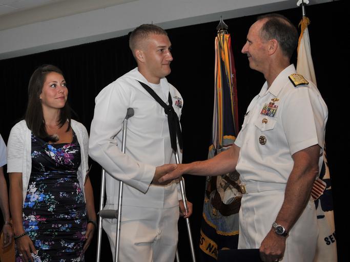 | Keywords: US Navy 110714-N-ZZ999-002 Hospital Corpsman 3rd Class Max R. Rohn is congratulated by Vice Chief of Naval Operations Adm. Jonathan W. Greenert dur.jpg  en WASHINGTON July 14 2011 Hospital Corpsman 3rd Class Max R Rohn is congratulated by Vice Chief of Naval Operations Adm Jonathan W Greenert during the third annual Safe Harbor Awards ceremony Safe Harbor is the Navy's lead organization for coordinating non-medical care of seriously wounded ill and injured Sailors and Coast Guardsmen and their families U S Navy photo by Mass Communication Specialist 3rd Class Matt Dickinson/Released 2011-07-14 110714-N-ZZ999-002 Navy http //www navy mil/view_image asp id 104132 U S Navy photo by Mass Communication Specialist 3rd Class Matt Dickinson PD-USGov-Military-Navy Images from US Navy location Washington DC  |