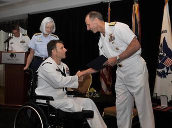 | Keywords: US Navy 110714-N-ZZ999-003 Explosive Ordnance Disposal Technician 1st Class Todd E. Hammond is congratulated by Vice Chief of Naval Operations Adm.jpg en WASHINGTON July 14 2011 Explosive Ordnance Disposal Technician 1st Class Todd E Hammond is congratulated by Vice Chief of Naval Operations Adm Jonathan W Greenert during the third annual Safe Harbor Awards ceremony Safe Harbor is the Navy's lead organization for coordinating non-medical care of seriously wounded ill and injured Sailors and Coast Guardsmen and their families U S Navy photo by Mass Communication Specialist 3rd Class Matt Dickinson/Released 2011-07-14 110714-N-ZZ999-003 Navy http //www navy mil/view_image asp id 104133 U S Navy photo by Mass Communication Specialist 3rd Class Matt Dickinson PD-USGov-Military-Navy Images from US Navy location Washington DC |
