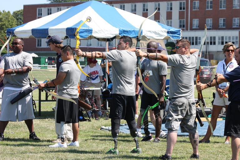 | Keywords: US Navy 110716-N-CQ687-004 Military Paralympic athletes practice archery on Pritchard Field during the 2011 U.S. Olympic Committee Paralympic Milit.jpg  en NEWPORT R I July 16 2011 Military Paralympic athletes practice archery on Prichard Field during the 2011 U S Olympic Committee Paralympic Military Sports Camp at Naval Station Newport U S Navy photo by Lisa Rama/Released 2011-07-16 110716-N-CQ687-004 Navy http //www navy mil/view_image asp id 104463 U S Navy photo by Lisa Rama PD-USGov-Military-Navy Naval Station Newport |