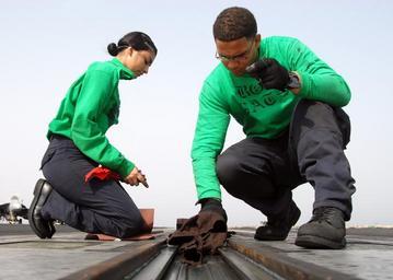 | Keywords: US Navy 110719-N-SG869-014 Aviation Boatswain's Mate (Equipment) Airman Jose Suero, from Pensacola, Fla., and Airman Deyanira Valle, from Phoenix,.jpg en GULF OF ADEN July 19 2011 Aviation Boatswain's Mate Equipment Airman Jose Suero from Pensacola Fla and Airman Deyanira Valle from Phoenix perform corrosion control on a catapult nose gear launch aboard the aircraft carrier USS Ronald Reagan CVN 76 Ronald Reagan is conducting operations supporting maritime security operations and theater security cooperation efforts in the U S 5th Fleet area of responsibility U S Navy photo by Mass Communication Specialist 2nd Class Josh Cassatt/Released 2011-07-19 110719-N-SG869-014 Navy http //www navy mil/view_image asp id 104499 U S Navy photo by Mass Communication Specialist 2nd Class Josh Cassatt PD-USGov-Military-Navy Aviation Boatswain's Mates Equipment Catapults of USS Ronald Reagan CVN-76 Flight deck maintenance aboard USS Ronald Reagan CVN-76 |