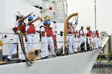 | Keywords: US Navy 110727-N-WP746-100 A sailor aboard the Philippine navy frigate BRP Gregorio del Pilar (PF-15) throws a line as the ship arrives at Joint Ba.jpg en PEARL HARBOR July 27 2011 A sailor aboard the Philippine navy frigate BRP Gregorio del Pilar PF-15 throws a line as the ship arrives at Joint Base Pearl Harbor-Hickam during a scheduled port visit The ship a former U S Coast Guard cutter is en route to the Republic of the Philippines to join the Philippine navy fleet As a multi-mission surface combatant ship Gregorio del Pilar becomes the first gas turbine jet engine-powered vessel in the Philippine navy U S Navy photo by Mass Communication Specialist 2nd Class Mark Logico/Released 2011-07-27 110727-N-WP746-100 Navy http //www navy mil/view_image asp id 104929 U S Navy photo by Mass Communication Specialist 2nd Class Mark Logico PD-USGov-Military-Navy 2011 in Pearl Harbor Images from US Navy location Pearl Harbor Hawaii BRP Gregorio del Pilar PF-15 |