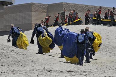 Keywords: US Navy 110728-N-GG400-158 The Leap Frogs, leave their drop zone after a training jump at Naval Amphibious Base Coronado as Basic Underwater Demoli.jpg en SAN DIEGO July 28 2011 Members of the U S Navy parachute team the Leap Frogs leave their drop zone after a training jump at Naval Amphibious Base Coronado as Basic Underwater Demolition/SEAL BUD/S Class 290 prepares for inflatable boat small IBS training The Leap Frogs perform aerial parachute demonstrations across the United States in support of Naval Special Warfare and Navy Recruiting U S Navy photo by Seaman Jumar T Balacy/Released 2011-07-28 110728-N-GG400-158 Navy http //www navy mil/view_image asp id 105014 U S Navy photo by Seaman Jumar T Balacy PD-USGov-Military-Navy Naval Amphibious Base Coronado United States Navy Parachute Team Basic Underwater Demolitions/SEAL