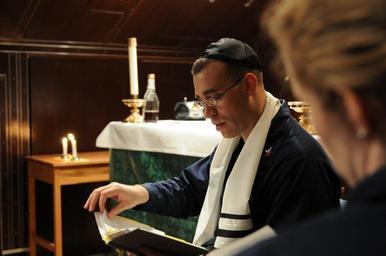 | Keywords: US Navy 110812-N-FU443-083 Legalman 2nd Class Justin M. Wiser reads from a prayer book during a Jewish Shabbat service in the chapel aboard the air.jpg en ARABIAN SEA Aug 12 2011 Legalman 2nd Class Justin M Wiser reads from a prayer book during a Jewish Shabbat service in the chapel aboard the aircraft carrier USS George H W Bush CVN 77 George H W Bush is deployed to the U S 5th Fleet area of responsibility on its first operational deployment conducting maritime security operations and support missions as part of Operations Enduring Freedom and New Dawn U S Navy photo by Mass Communication Specialist 2nd Class Timothy Walter/Released 2011-08-12 110812-N-FU443-083 Navy http //www navy mil/view_image asp id 105748 U S Navy photo by Mass Communication Specialist 2nd Class Timothy Walter PD-USGov-Military-Navy Aboard USS George H W Bush CVN-77 Jewish people praying |