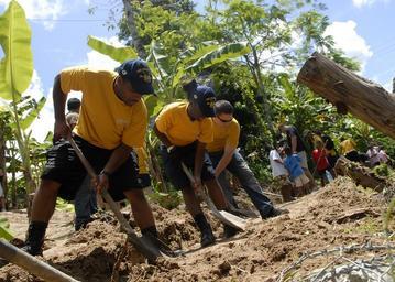 | Keywords: US Navy 110823-N-UT455-053 Sailors assigned to the amphibious transport dock ship USS Green Bay (LPD 20) help build a river retaining wall.jpg en PHANG NGA PROVINCE Thailand Aug 23 2011 Sailors assigned to the amphibious transport dock ship USS Green Bay LPD 20 help build a river retaining wall during a community service project at the Home and Life Orphanage Green Bay is underway in the U S 7th Fleet area of responsibility during its maiden western Pacific deployment U S Navy photo by Mass Communication Specialist 1st Class Larry S Carlson/Released 2011-08-23 110823-N-UT455-053 Navy http //www navy mil/view_image asp id 106505 U S Navy photo by Mass Communication Specialist 1st Class Larry S Carlson PD-USGov-Military-Navy Aboard USS Green Bay LPD-20 |