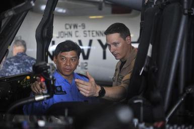 | Keywords: US Navy 110909-N-EZ913-281 John C. Stennis hosted U.S. Ambassador to Malaysia Paul W. Jones and 21 distinguished visitors from the armed forces of.jpg en STRAIT OF MALACCA Sept 9 2011 Naval Air Crewman 2nd Class Shawn Lindsey assigned to the Raptors of Helicopter Maritime Strike Squadron HSM 71 explains the flight controls of an MH-60R Sea Hawk helicopter to Vice Adm Datuk Ahmad Kamarulzaman bin Hj Ahmad Badaruddin Malaysia's Joint Forces Commander aboard the Nimitz-class aircraft carrier USS John C Stennis CVN 74 John C Stennis hosted U S Ambassador to Malaysia Paul W Jones and 21 distinguished visitors from the armed forces of Malaysia U S Navy photo by Mass Communication Specialist 3rd Class Dugan Flynn/Released 2011-09-09 110909-N-EZ913-281 Navy http //www navy mil/view_image asp id 107152 U S Navy photo by Mass Communication Specialist 3rd Class Dugan Flynn PD-USGov-Military-Navy Guests aboard USS John C Stennis CVN-74 |