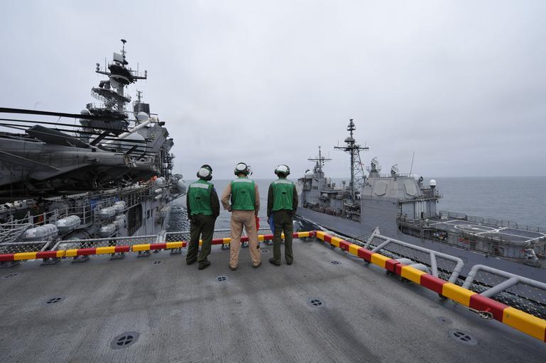 | Keywords: US Navy 110914-N-KS651-134 Marines assigned to the 11th Marine Expeditionary Unit (11th MEU) watch as the amphibious assault ship USS Makin Island.jpg en PACIFIC OCEAN Sept 14 2011 Marines assigned to the 11th Marine Expeditionary Unit 11th MEU watch as the amphibious assault ship USS Makin Island LHD 8 prepares to send fuel to the guided-missile cruiser USS Bunker Hill CG-52 during a replenishment at sea The Makin Island Amphibious Ready Group is conducting a composite training unit exercise COMPTUEX off the coast of Southern California U S Navy photo by Mass Communication Specialist 2nd Class Jason Behnke/Released 2011-09-14 110914-N-KS651-134 Navy http //www navy mil/view_image asp id 107350 U S Navy photo by Mass Communication Specialist 2nd Class Jason Behnke PD-USGov-Military-Navy Aboard USS Makin Island LHD-8 Aboard USS Bunker Hill CG-52 |