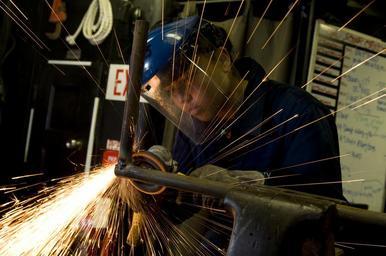 | Keywords: US Navy 110924-N-TZ605-148 Hull Technician Fireman Jessica Crosby, assigned to Engineering Department's R-1 Division, makes a hand rail aboard the.jpg en PACIFIC OCEAN Sept 24 2011 Hull Technician Fireman Jessica Crosby assigned to Engineering Department's R-1 Division makes a hand rail aboard the Nimitz-class aircraft carrier USS Carl Vinson CVN 70 Carl Vinson and Carrier Air Wing 17 are underway conducting operations off the coast of Southern California U S Navy photo by Mass Communication Specialist 3rd Class Timothy A Hazel/Released 2011-09-24 110924-N-TZ605-148 Navy http //www navy mil/view_image asp id 107791 U S Navy photo by Mass Communication Specialist 3rd Class Timothy A Hazel PD-USGov-Military-Navy Aboard USS Carl Vinson CVN-70 Angle grinders without protective jacket Face shields Chemical sparks |