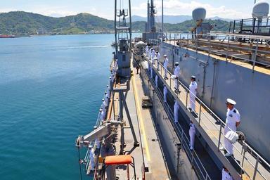 | Keywords: US Navy 111011-N-WG146-055 Sailors aboard the submarine tender USS Emory S. Land (AS 39) man the rails as the ship prepares to moor at Kota Kinabal.jpg en SEPANGAR Malaysia Oct 11 2011 Sailors aboard the submarine tender USS Emory S Land AS 39 man the rails as the ship prepares to moor at Kota Kinabalu Naval Base Sepangar as part of a theater security cooperation and friendship visit Emory S Land is on an extended deployment supporting submarine and surface ship maintenance in the U S 7th Fleet area of responsibility U S Navy photo by Mass Communication Specialist 2nd Class Elizabeth Fray/Released 2011-10-11 111011-N-WG146-055 Navy http //www navy mil/view_image asp id 108699 U S Navy photo by Mass Communication Specialist 2nd Class Elizabeth Fray PD-USGov-Military-Navy USS Emory S Land AS-39 |