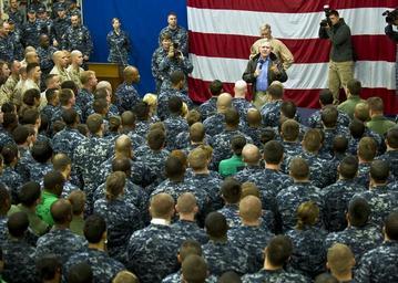 | Keywords: US Navy 111015-N-AC887-004 Secretary of the Navy (SECNAV) the Honorable Ray Mabus speaks to Sailors and Marines during an all-hands call aboard the.jpg en ATLANTIC OCEAN Oct 15 2011 Secretary of the Navy SECNAV the Honorable Ray Mabus speaks to Sailors and Marines during an all-hands call aboard the amphibious assault ship USS Wasp LHA 1 Mabus and Commandant of the Marine Corps Gen James F Amos embarked aboard Wasp to get a first-hand look at the Marine Corps variant of the Joint Strike Fighter during sea trials U S Navy photo by Chief Mass Communication Specialist Sam Shavers/Released 2011-10-15 111015-N-AC887-004 Navy http //www navy mil/view_image asp id 108958 U S Navy photo by Chief Mass Communication Specialist Sam Shavers PD-USGov-Military-Navy Aboard USS Wasp LHD-1 |