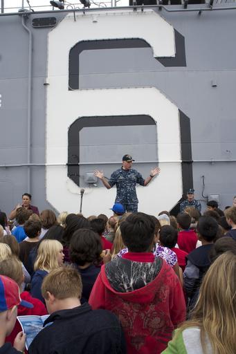 Keywords: US Navy 111021-N-ZC343-551 Capt. J. L. Harnden, commanding officer of the amphibious assault ship USS Bonhomme Richard (LHD 6), welcomes 5th grader.jpg en SAN DIEGO Oct 21 2011 Capt J L Harnden commanding officer of the amphibious assault ship USS Bonhomme Richard LHD 6 welcomes 5th graders aboard the ship from Gerald R Ford Elementary School in Indian Wells Calif Bonhomme Richard has maintained a partnership with the school for more than ten years U S Navy photo by Senior Chief Mass Communication Specialist Joe Kane/Released 2011-10-21 111021-N-ZC343-551 Navy http //www navy mil/view_image asp id 109328 U S Navy photo by Senior Chief Mass Communication Specialist Joe Kane PD-USGov-Military-Navy Aboard USS Bonhomme Richard LHD-6 6 number Photographs by Joseph Kane