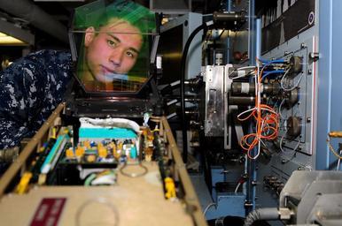| Keywords: US Navy 111028-N-HM829-010 Aviation Electronics Technician Airman Tony A. Hoang tests operation modes on a night heads-up display aboard the aircra.jpg en ARABIAN GULF Oct 28 2011 Aviation Electronics Technician Airman Tony A Hoang tests operation modes on a night heads-up display aboard the aircraft carrier USS George H W Bush CVN 77 George H W Bush is deployed to the U S 5th Fleet area of responsibility on its first operational deployment conducting maritime security operations and support missions as part of Operations Enduring Freedom and New Dawn U S Navy photo by Mass Communication Specialist Seaman K Cecelia Engrums/Released 2011-10-28 111028-N-HM829-010 Navy http //www navy mil/view_image asp id 109636 U S Navy photo by Mass Communication Specialist Seaman K Cecelia Engrums PD-USGov-Military-Navy Aboard USS George H W Bush CVN-77 |