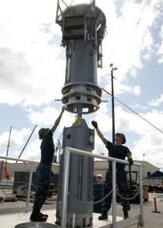 | Keywords: US Navy 111109-N-BT122-481 Sailors attach a missile tube extension loader to a lifting adapter during a Naval Air Systems Command Tomahawk site cer.jpg en POLARIS POINT Guam Nov 9 2011 Machinist's Mate 2nd Class Jason Hefner and Machinist's Mate 2nd Class Jonathan Newman both assigned to the submarine tender USS Frank Cable AS 40 attach a missile tube extension loader to a lifting adapter during a Naval Air Systems Command Tomahawk site certification Frank Cable conducts maintenance and support of submarines and surface vessels deployed in the U S 7th Fleet area of responsibility U S Navy photo by Mass Communication Specialist 1st Class Melvin Nobeza/Released 2011-11-09 111109-N-BT122-481 Navy http //www navy mil/view_image asp id 110056 U S Navy photo by Mass Communication Specialist 1st Class Melvin Nobeza PD-USGov-Military-Navy Aboard USS Frank Cable AS-40 |