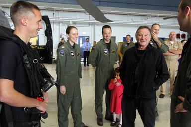 | Keywords: US Navy 111112-N-RC734-080 Academy Award winning actor and comedian Robin Williams meets with naval aircrewmen assigned to the Wolf Pack of Helicop.jpg en SAN DIEGO Nov 12 2011 Academy Award winning actor and comedian Robin Williams meets with naval aircrewmen assigned to the Wolf Pack of Helicopter Maritime Strike Squadron HSM 75 at Naval Air Station North Island Williams was on hand to meet with service members and their families and to introduce a sneak preview of the movie Happy Feet Two U S Navy photo by Mass Communication Specialist 2nd Class Joseph M Buliavac/Released 2011-11-12 111112-N-RC734-080 Navy http //www navy mil/view_image asp id 110406 U S Navy photo by Mass Communication Specialist 2nd Class Joseph M Buliavac PD-USGov-Military-Navy Helicopter Maritime Strike Squadron 75 United States Navy Guests at Naval Air Station North Island Happy Feet Two Robin Williams |