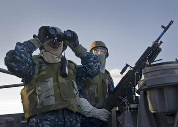 | Keywords: US Navy 111114-N-RI884-017 Members of port bridge wing SCAT team stand watch aboard the guided-missile destroyer USS O'Kane.jpg en PACIFIC OCEAN Nov 14 2011 Members of port bridge wing small caliber action team SCAT team stand watch aboard the guided-missile destroyer USS O'Kane DDG 77 during training as part of the integrated maritime exercise Koa Kai O'Kane is participating in Koa Kai with the Japan Maritime Self-Defense Force JMSDF helicopter destroyer JS Kurama DDH 144 to prepare independent deployers in multiple warfare areas and provide training in a multi-ship environment U S Navy photograph by Mass Communication Specialist 2nd Class Daniel Barker/Released 2011-11-14 111114-N-RI884-017 Navy http //www navy mil/view_image asp id 110517 U S Navy photograph by Mass Communication Specialist 2nd Class Daniel Barker PD-USGov-Military-Navy USS O'Kane DDG-77 |