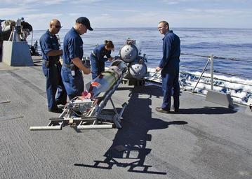 | Keywords: US Navy 111115-N-RI884-254 Sailors aboard the guided-missile destroyer USS O'Kane (DDG 77) load a MK 46 Mod 5A exercise torpedo during the integrat.jpg en PACIFIC OCEAN Nov 15 2011 Sailors aboard the guided-missile destroyer USS O'Kane DDG 77 load a MK 46 Mod 5A exercise torpedo during the integrated maritime exercise Koa Kai Koa Kai prepares independent deployers in multiple warfare areas and provides training in a multi-ship environment U S Navy photo by Mass Communication Specialist 2nd Class Daniel Barker/Released 2011-11-15 111115-N-RI884-254 Navy http //www navy mil/view_image asp id 110560 U S Navy photo by Mass Communication Specialist 2nd Class Daniel Barker PD-USGov-Military-Navy USS O'Kane DDG-77 |