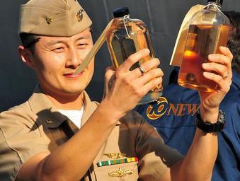 | Keywords: US Navy 111116-N-HC601-004 Lt. Cmdr. Frank Kim, fuel officer for Naval Supply Systems Command, Fleet Logistics Center San Diego, compares sample bo.jpg en SAN DIEGO Nov 16 2011 Lt Cmdr Frank Kim fuel officer for Naval Supply Systems Command Fleet Logistics Center San Diego compares sample bottles of traditional diesel fuel marine and an algae-derived alternative fuel during the Navy's largest shipboard alternative fuel test at Naval Base Point Loma in San Diego The fuel department of Naval Supply Systems Command Fleet Logistics Center San Diego loaded the Self Defense Test Ship with 20 000 gallons of the alternative fuel for the demonstration U S Navy photo by Candice Villarreal/Released 2011-11-16 111116-N-HC601-004 Navy http //www navy mil/view_image asp id 110891 U S Navy photo by Candice Villarreal PD-USGov-Military-Navy Images from US Navy location San Diego California |