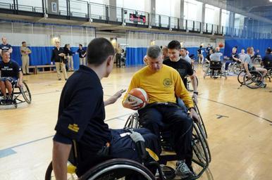 | Keywords: US Navy 111118-N-AD372-016 Master Chief Petty Officer of the Navy (MCPON) Rick D. West received a quick tutorial before the Navy Safe Harbor Wheel.jpg en WASHINGTON Nov 18 2011 Master Chief Petty Officer of the Navy MCPON Rick D West received a quick tutorial before the Navy Safe Harbor Wheel Chair Exhibition at the Pentagon Athletic Center U S Navy photo by Mass Communication Specialist 1st Class Abraham Essenmacher/Released 2011-11-18 111118-N-AD372-016 Navy http //www navy mil/view_image asp id 110677 U S Navy photo by Mass Communication Specialist 1st Class Abraham Essenmacher PD-USGov-Military-Navy Images from US Navy location Washington DC Rick D West |