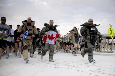 | Keywords: US Navy 111126-N-ZZ999-008 More than 500 deployed U.S. and coalition service members participate in the EOD Wounded Warrior 5K run.jpg en KANDAHAR Afghanistan Nov 26 2011 More than 500 deployed U S and coalition service members participate in the EOD Wounded Warrior 5K run in honor of the 80 explosive ordnance technicians injured during combat operations in Afghanistan throughout 2011 The event generated over 22 000 for the Wounded EOD Warrior Foundation U S Navy photo by Mass Communication Specialist 2nd Class Ernest R Scott/Released 2011-11-26 111126-N-ZZ999-008 Navy http //www navy mil/view_image asp id 112041 U S Navy photo by Mass Communication Specialist 2nd Class Ernest R Scott PD-USGov-Military-Navy Kandahar Kandahar Province in the War in Afghanistan 2001-present Bomb suits |