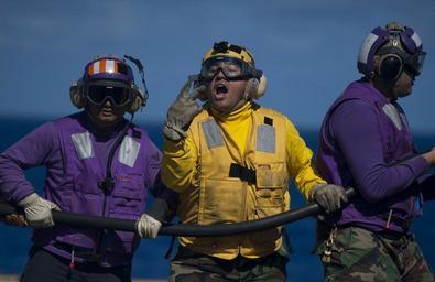 | Keywords: US Navy 111129-N-PB383-610 Aviation Boatswain's Mate (Fuel) 3rd Class James Lising calls for two additional hose men during a fire drill on the fl.jpg en PACIFIC OCEAN Nov 29 2011 Aviation Boatswain's Mate Fuel 3rd Class James Lising calls for two additional hose men during a fire drill on the flight deck of the amphibious transport dock ship USS New Orleans LPD 18 New Orleans and embarked Marines assigned to the 11th Marine Expeditionary Unit 11th MEU are conducting operations in the U S 7th fleet area of responsibility as part of the Makin Island Amphibious Ready Group U S Navy photo by Mass Communication Specialist 3rd Class Dominique Pineiro/Released 2011-11-29 111129-N-PB383-610 Navy http //www navy mil/view_image asp id 111063 U S Navy photo by Mass Communication Specialist 3rd Class Dominique Pineiro PD-USGov-Military-Navy Flight deck of USS New Orleans LPD-18 |