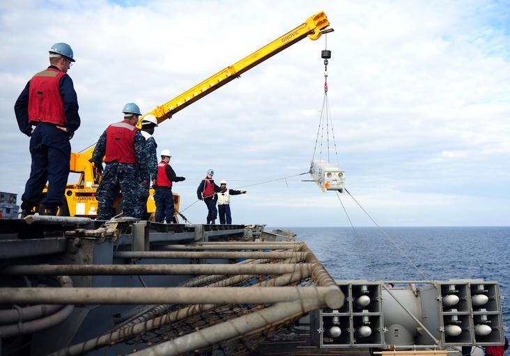 | Keywords: US Navy 111129-N-QL471-166 Sailors lower a weapon case from the flight deck of the aircraft carrier USS George H.W. Bush (CVN 77).jpg en MEDITERRANEAN SEA Nov 15 2011 Sailors lower a weapon case from the flight deck of the aircraft carrier USS George H W Bush CVN 77 George H W Bush is supporting maritime security operations and theater security cooperation efforts in the U S 6th Fleet area of responsibility U S Navy photo by Mass Communication Specialist 3rd Class Billy Ho/Released 2011-11-15 111129-N-QL471-166 Navy http //www navy mil/view_image asp id 111169 U S Navy photo by Mass Communication Specialist 3rd Class Billy Ho PD-USGov-Military-Navy Aboard USS George H W Bush CVN-77 |