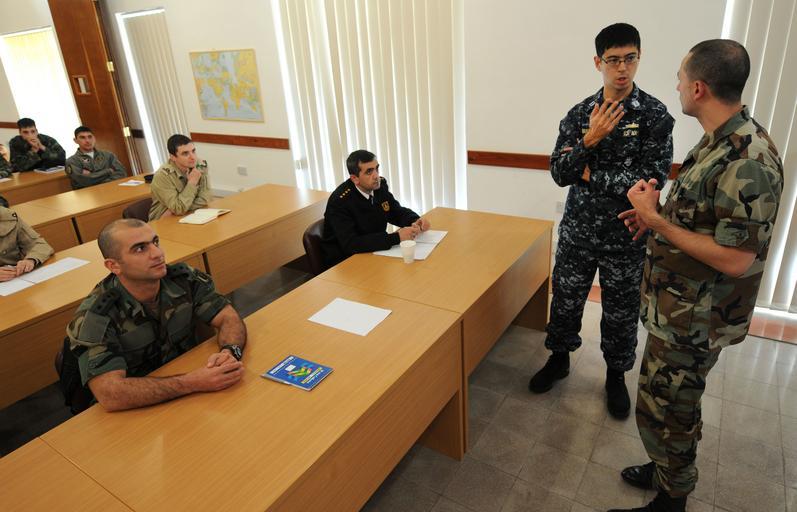 Keywords: US Navy 111207-N-FV216-002 Lt. Kent Bubel speaks with a maritime search and rescue workshop instructor at the Armed Forces of Malta Maritime Safety.jpg en VALLETTA Malta Dec 7 2011 Lt Kent Bubel speaks with a maritime search and rescue workshop instructor at the Armed Forces of Malta Maritime Safety and Security Training Center during Eurasia Partnership Capstone 2011 EPC Participants for EPC 2011 include approximately 100 representatives from Azerbaijan Bulgaria Georgia Greece Malta Romania Ukraine and the United States who will focus on strengthening maritime relationships between Eurasian nations Training workshops will range from maritime law enforcement search and rescue marine environmental protection and advanced network-enabled maritime interdiction operations U S Navy photo by Mass Communication Specialist 3rd Class Caitlin Conroy/Released 2011-12-07 111207-N-FV216-002 Navy http //www navy mil/view_image asp id 111810 U S Navy photo by Mass Communication Specialist 3rd Class Caitlin Conroy PD-USGov-Military-Navy Images from US Navy location Valletta Malta 2011 in Malta