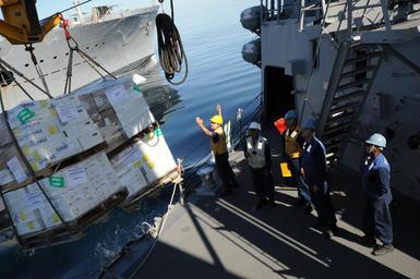 | Keywords: US Navy 111210-N-NP071-030 A Sailor signals to the wench operator.jpg en ARABIAN GULF Dec 10 2011 Boatswain's Mate 3rd Class Ryan Solomon a rigger captain aboard the guided-missile destroyer USS Wayne E Meyer DDG 108 signals to the wench operator aboard the Military Sealift Command fleet replenishment oiler USNS Joshua Humphreys T-AO 188 during a replenishment at sea Wayne E Meyer is deployed to the U S 5th Fleet area of responsibility conducting maritime security operations U S Navy photo by Mass Communication Specialist 1st Class J Denise Martin/Released 2011-12-10 111210-N-NP071-030 Navy http //www navy mil/view_image asp id 112591 U S Navy photo by Mass Communication Specialist 1st Class J Denise Martin PD-USGov-Military-Navy USS Wayne E Meyer DDG-108 |