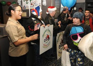 | Keywords: US Navy 111213-N-SZ959-010 Interior Communications Electrician 2nd Class Erica Tapia, from the Second Class Petty Officer Association of the aircra.jpg en NORFOLK Dec 13 2011 Interior Communications Electrician 2nd Class Erica Tapia from the Second Class Petty Officer Association of the aircraft carrier USS Theodore Roosevelt CVN 71 cheers for Gold Star families returning from Dallas at Norfolk International Airport during this year's Snowball Express event The Snowball Express sends families of service members who lost their lives in the line of duty on an all-expense paid trip every holiday season This year the Snowball Express sent 1 500 families to Dallas for exclusive events including a concert by Gary Sinise and the Lt Dan Band Theodore Roosevelt is undergoing a 39-month refueling complex overhaul at Huntington Ingalls Industries Newport News Shipbuilding U S Navy photo by Mass Communication Specialist 2nd Class Christopher J Church/Released 2011-12-13 111213-N-SZ959-010 Navy http //www navy mil/view_image asp id 112274 U S Navy photo by Mass Communication Specialist 2nd Class Christopher J Church PD-USGov-Military-Navy Aboard USS Theodore Roosevelt CVN-71 |