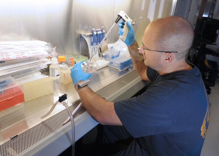 | Keywords: US Navy 111215-N-PO203-033 Lt. Denis Colomb, principal investigator with Navy Experimental Diving Unit, prepares cell cultures.jpg  en PANAMA CITY Fla Dec 15 2011 Lt Denis Colomb principal investigator with Navy Experimental Diving Unit prepares cell cultures that after seven days of treatment will be ready for whole-cell electrophysiology Using a technique called patch clamping in which electrodes are attached to a cell membrane and clamped scientists can monitor stimulate and record the cell's electrical activity in a pressurized environment The Office of Naval Research Undersea Medicine program is a National Naval Responsibility a science and technology research area the Department of the Navy has deemed critically important to maintaining naval superiority U S Navy photo by John F Williams/Released 2011-12-15 111215-N-PO203-033 Navy http //www navy mil/view_image asp id 113345 U S Navy photo by John F Williams PD-USGov-Military-Navy Images from US Navy location PANAMA CITY Fla |