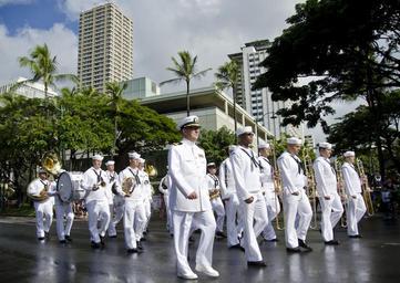 | Keywords: US Navy 111218-N-RI884-097 The U.S. Pacific Fleet Marching Band participates in a parade through downtown Waikiki honoring Japanese-American vetera.jpg en HONOLULU Dec 18 2011 The U S Pacific Fleet Marching Band participates in a parade through downtown Waikiki honoring Japanese-American veterans of World War II who recently received the Congressional Gold Medal The medal was presented to members of the 442nd Regimental Combat Team 100th Infantry Battalion Military Intelligence Service and the 1399th Engineer Construction Battalion U S Navy photo by Mass Communication Specialist 2nd Class Daniel Barker/Released 2011-12-18 111218-N-RI884-097 Navy http //www navy mil/view_image asp id 112508 U S Navy photo by Mass Communication Specialist 2nd Class Daniel Barker PD-USGov-Military-Navy Images from US Navy location HONOLULU |