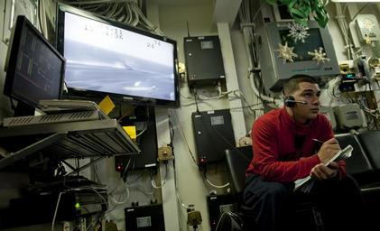 | Keywords: US Navy 111219-N-OY799-198 Aviation Ordnanceman Airman Martin Grujillo, from El Central, Calif., records ordnance carried on aircrafts in flight de.jpg en ARABIAN GULF Dec 19 2011 Aviation Ordnanceman Airman Martin Grujillo from El Central Calif records ordnance carried on aircrafts in flight deck control aboard the Nimitz-class aircraft carrier USS John C Stennis CVN 74 John C Stennis is deployed to the U S 5th Fleet area of responsibility conducting maritime security operations and support missions as part of Operations Enduring Freedom and New Dawn U S Navy photo by Mass Communication Specialist 3rd Class Kenneth Abbate/Released 2011-12-19 111219-N-OY799-198 Navy http //www navy mil/view_image asp id 112449 U S Navy photo by Mass Communication Specialist 3rd Class Kenneth Abbate PD-USGov-Military-Navy Aboard USS John C Stennis CVN-74 |